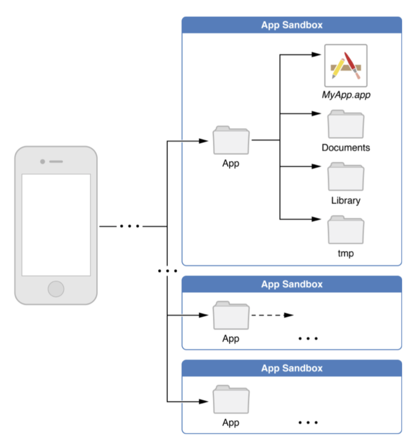 보안을 위해 App과 시스템의 상호 작용은 App의 SandBox Directory에 있는 Directory로 제한됩니다.