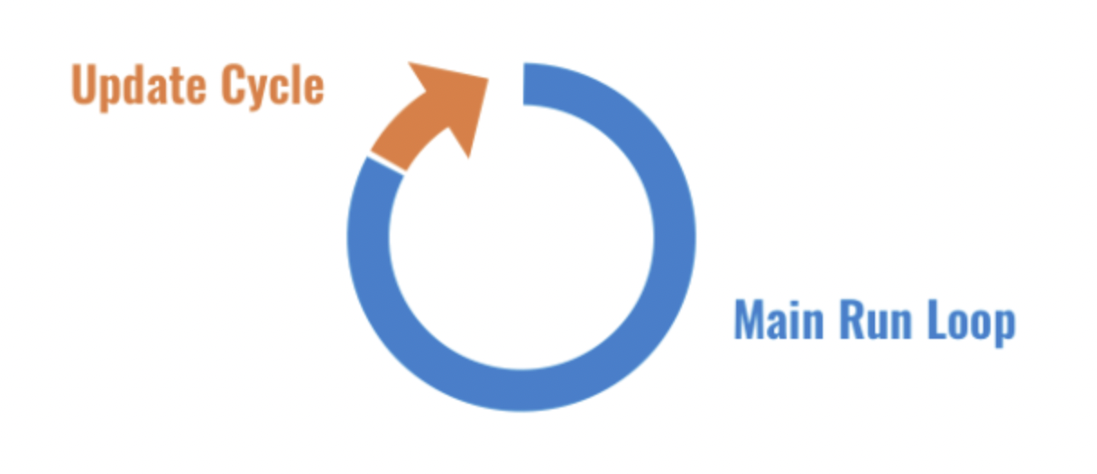 - 메서드들이 반환되면 다시 컨트롤은 main run loop으로 돌아가서 Update Cycle이 다시 시작된다.
